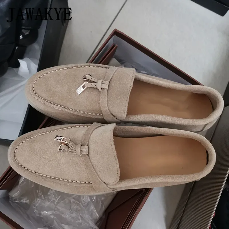 Limited Offer Jawakye Multicolor Real Leather Suede Comfortable Flat Shoes For Women Round Toe Metal Lock Decorat with Free Shipping Worldwide!