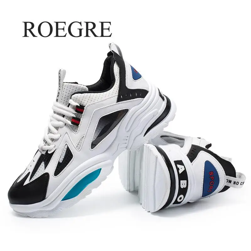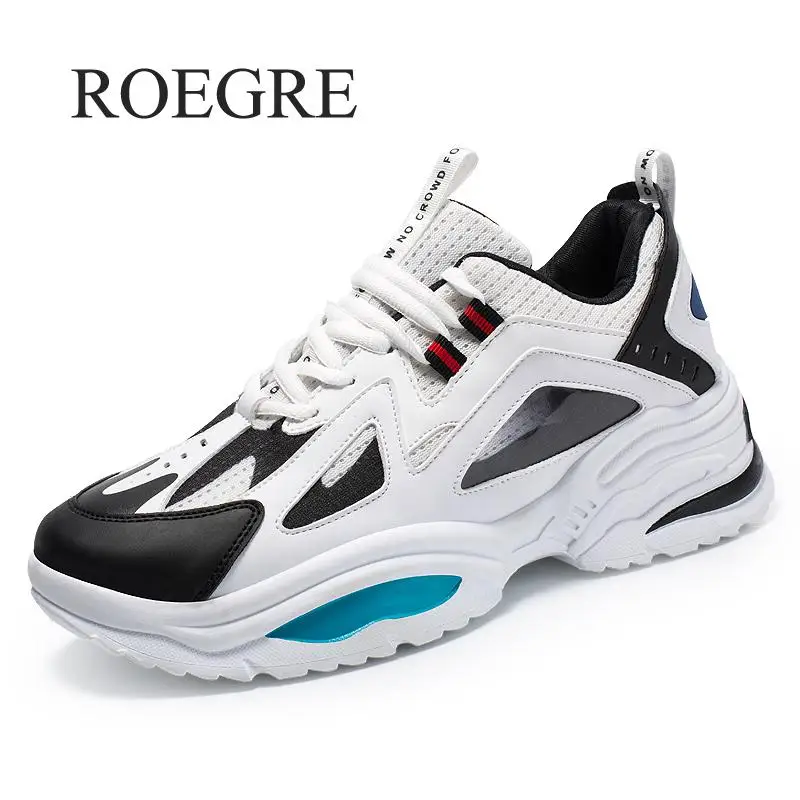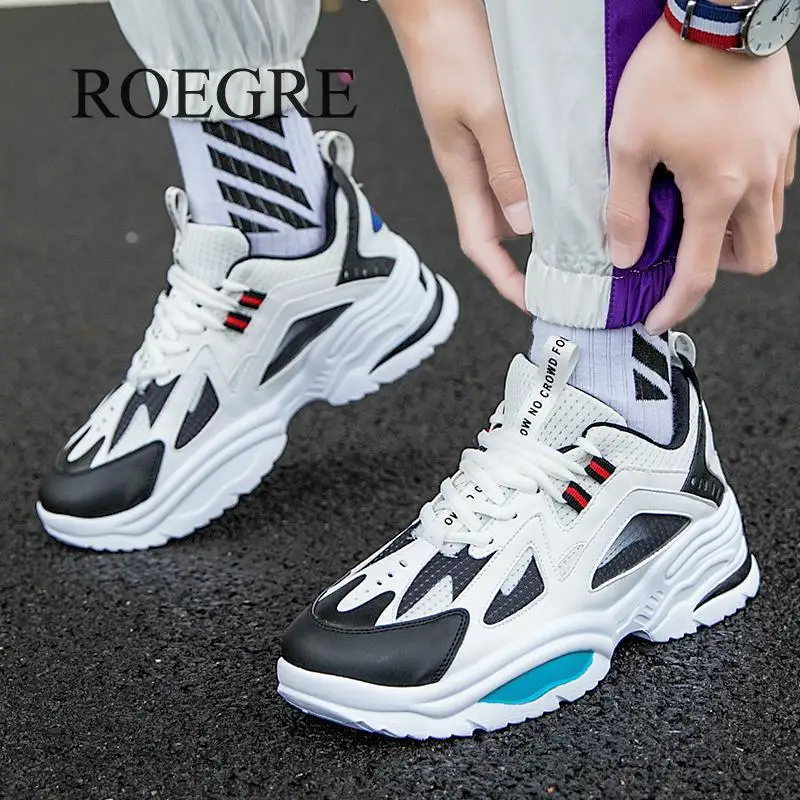 2019 New Dad Shoes Men Chunky Sneakers Quality Leather Mesh Patchwork Men Casual Shoes Comfortable Black Leisure Men Shoes 45