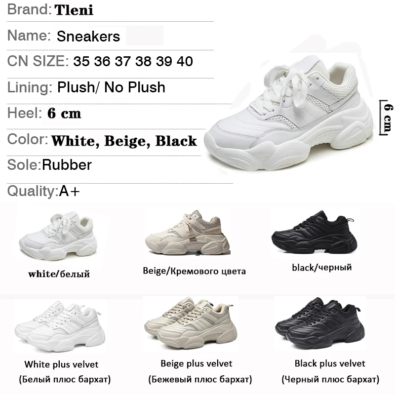 Tleni 2019 Sneakers Women Spring New Running Shoes Female Platform White Sports Shoes Big Size 35-40 Zw-01