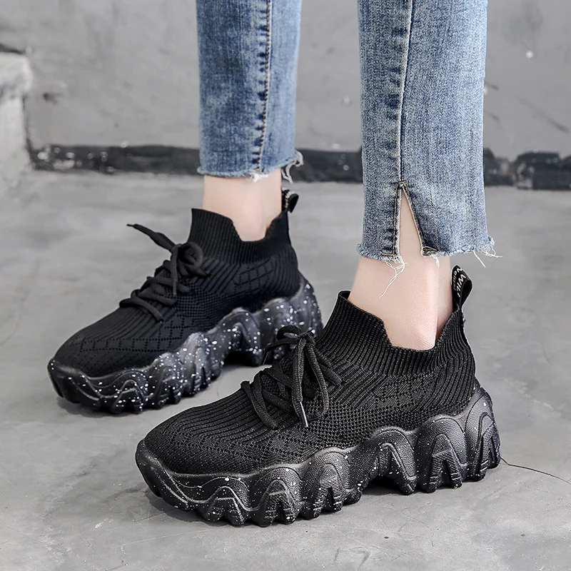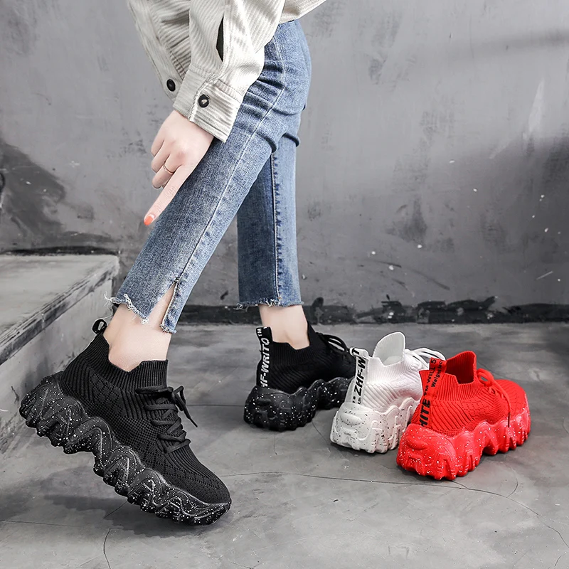 Special Offer Women Dad Platform Cm Flying Woven Breathable Running Shoes Female Harajuku Comfortable Sneakers with Free Worldwide Shipping!